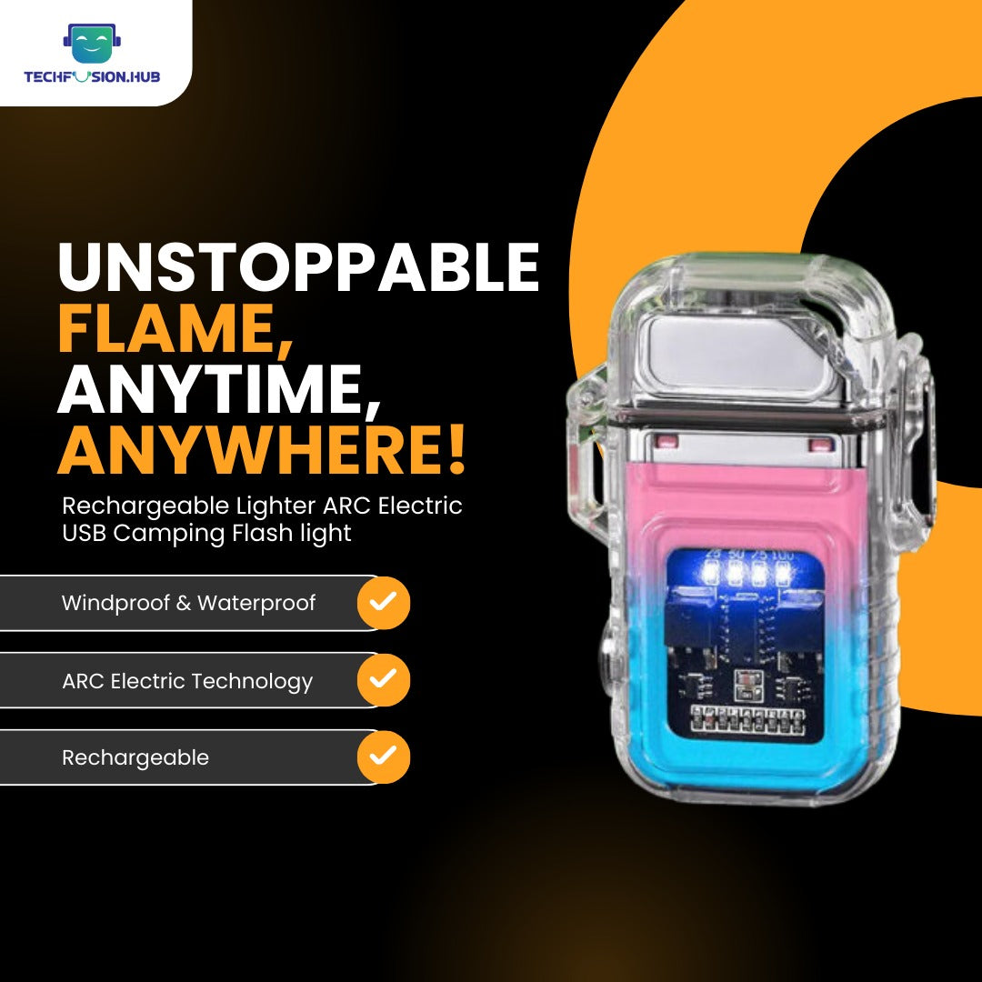 TechFsuion.Hub"Arc Plasma Lighter with LED Flashlight - USB Rechargeable, Windproof, Waterproof, Mini Electric Lighter