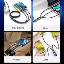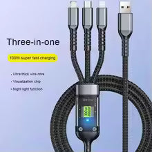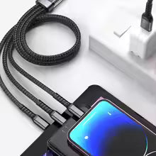 This three-in-one interface cable is compatible with all mobile phones and ensures fast charging, delivering 100W high power for instant recharging.
