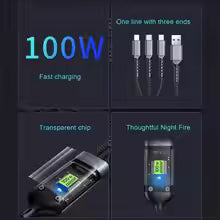 TechFusion.Hub"100w Fast Charging Cable Three-in-one Charging Cable Universal 3 1 Fast Charging Cable with Type-c Micro Usb Connectors for Cell