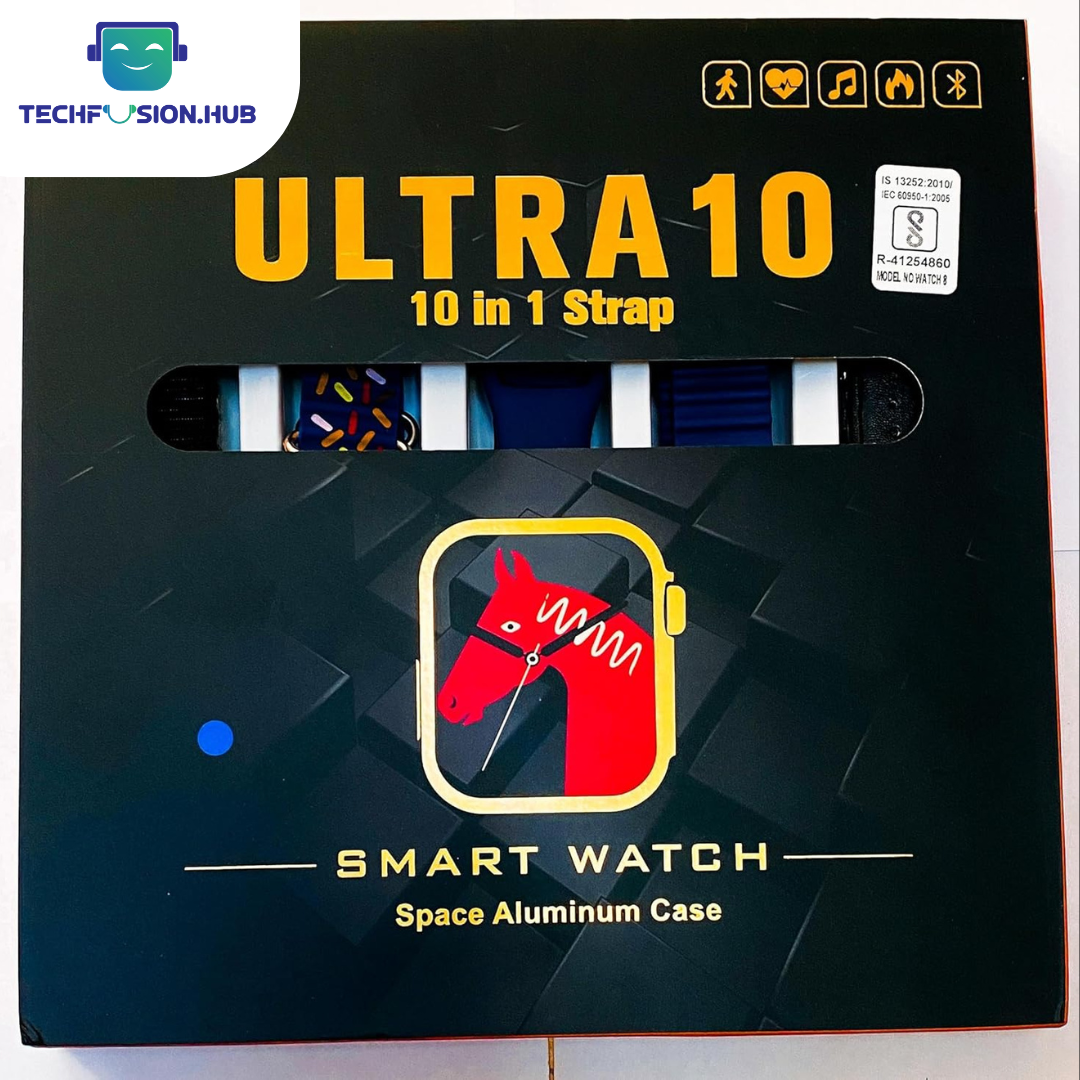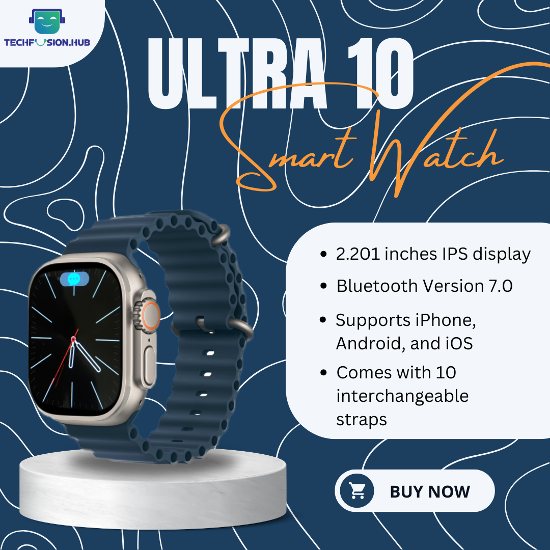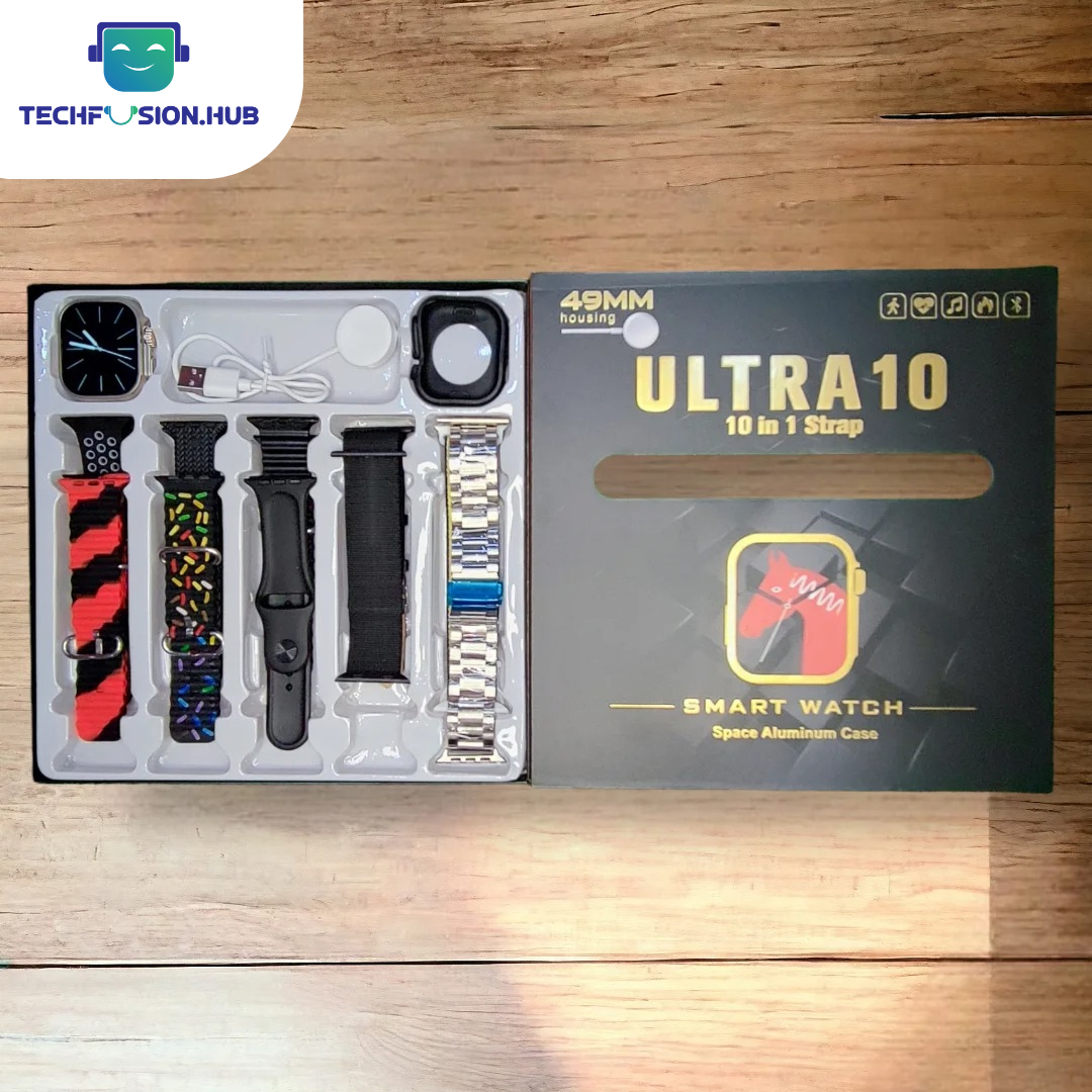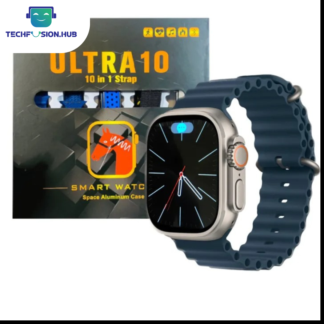 TechFusion.Hub"Ultra 10 Smart Watch with 10 Interchangeable Straps – 2.1" HD Display, Bluetooth Calling, Fitness & Health Tracker